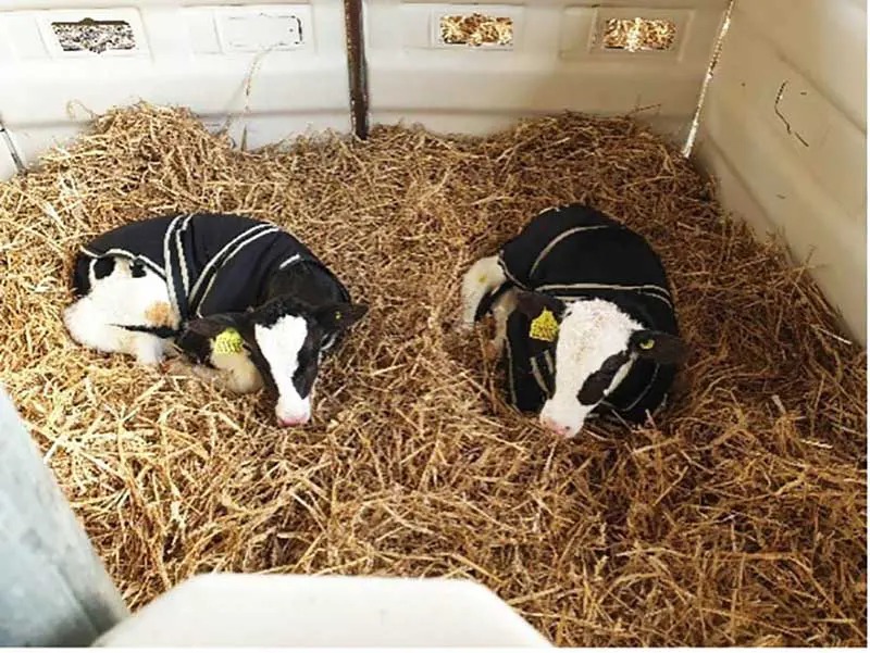 شکل ۱. یک جفت گوساله نگهداری شده اغلب رفتار خود را هماهنگ میکنند و ساعتهای زیادی را با هم دراز میکشند یا در جنب و جوش هستند.